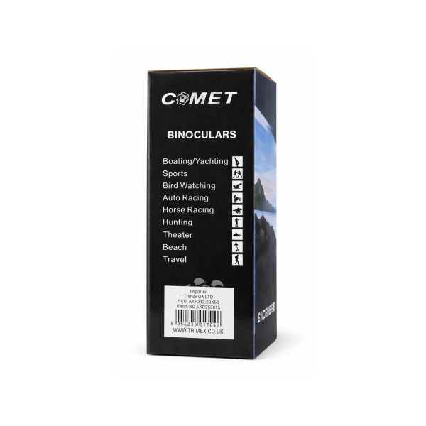 The COMET 20×50 binoculars feature a classic binocular design that offers a comfortable grip and stable viewing. They are suitable for both beginners and casual outdoor enthusiasts who want a reliable pair of binoculars for everyday observation.