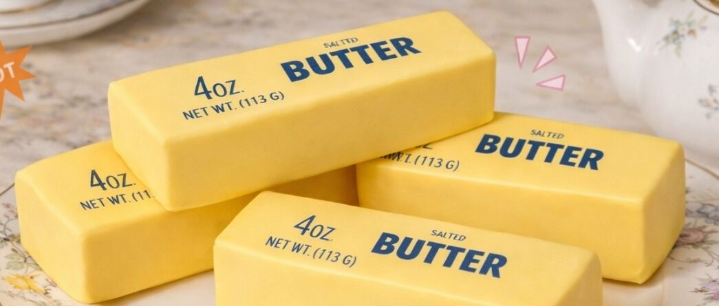 A butter stick squishy toy is a soft novelty squeeze toy designed to resemble a traditional stick of salted butter. The toy typically features realistic butter-style packaging with printed text such as “4 oz. Salted Butter”, which adds a humorous and eye-catching effect.