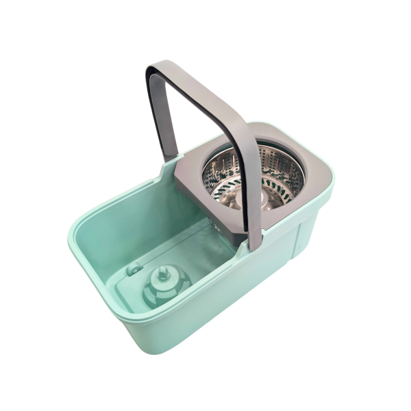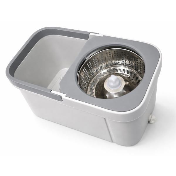 • Dual-section bucket with stainless steel spin wringer