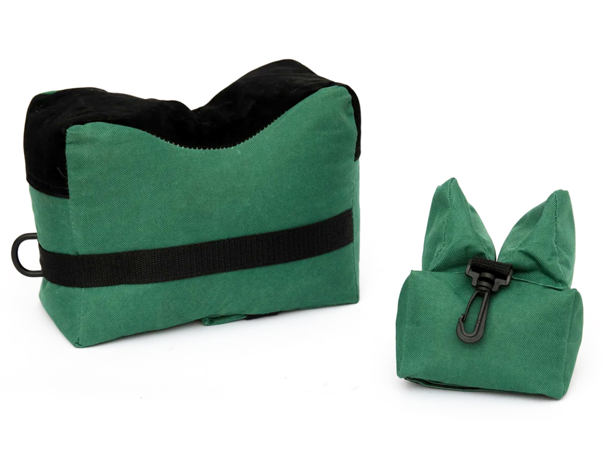 Specification: Name: Trimex Arms Unfilled Shooting Front and Rear Bench Bag Brand : Trimex Color: Green and Black Filled: Yes